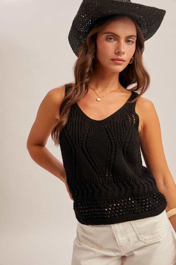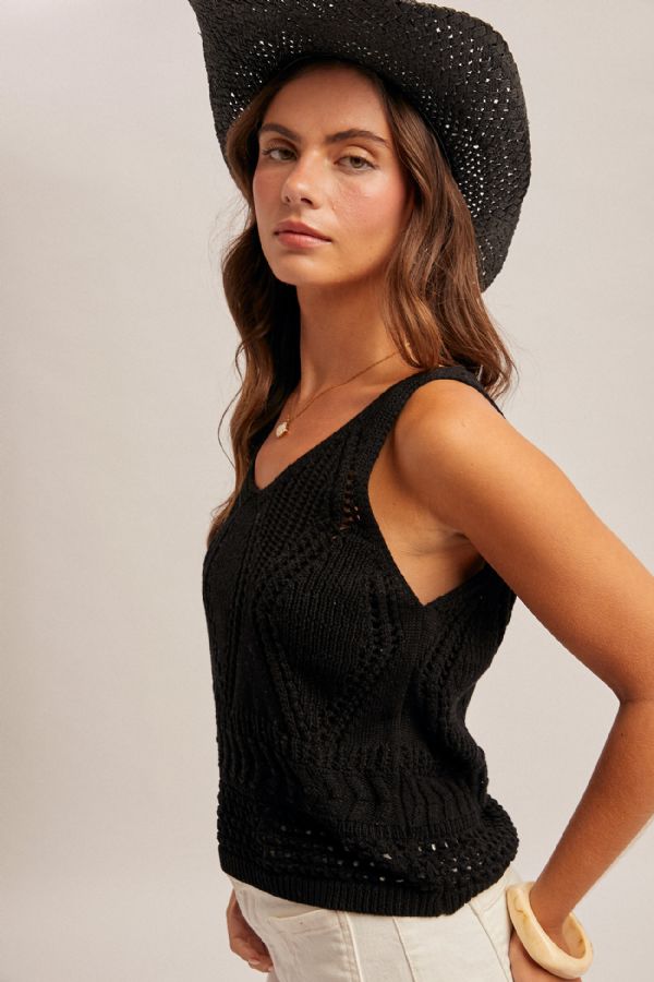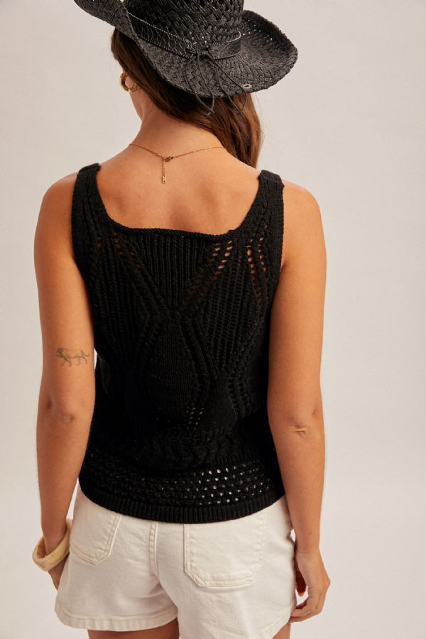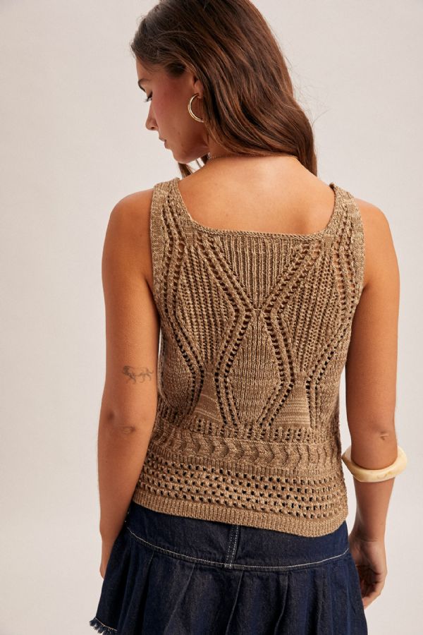Open Crochet Sweater Tank Top