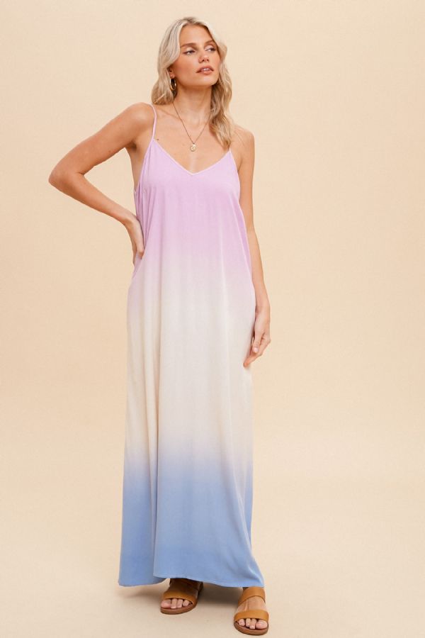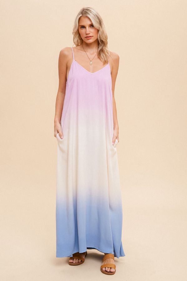 OMBRE DIP DYE MAXI DRESS WITH POCKETS